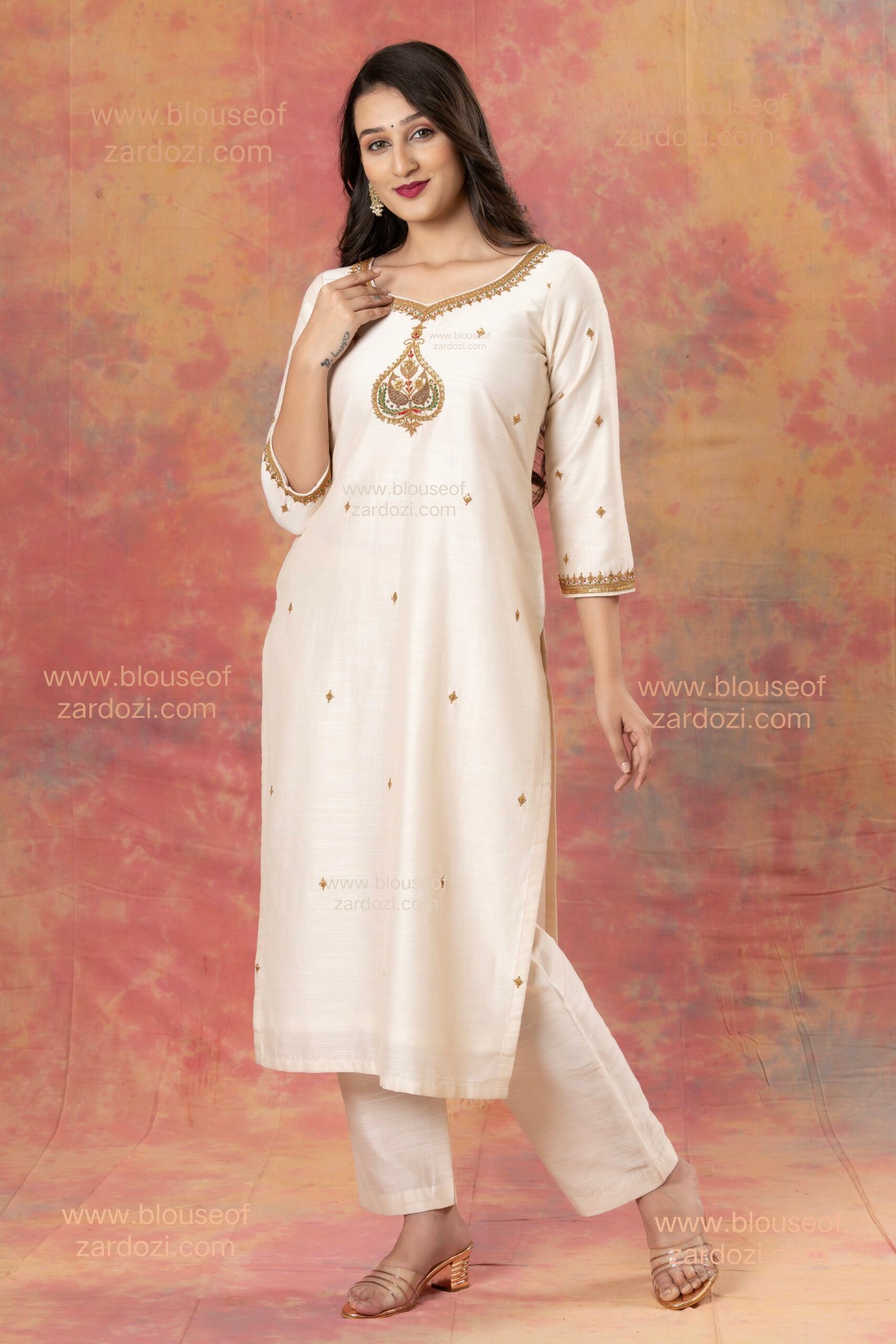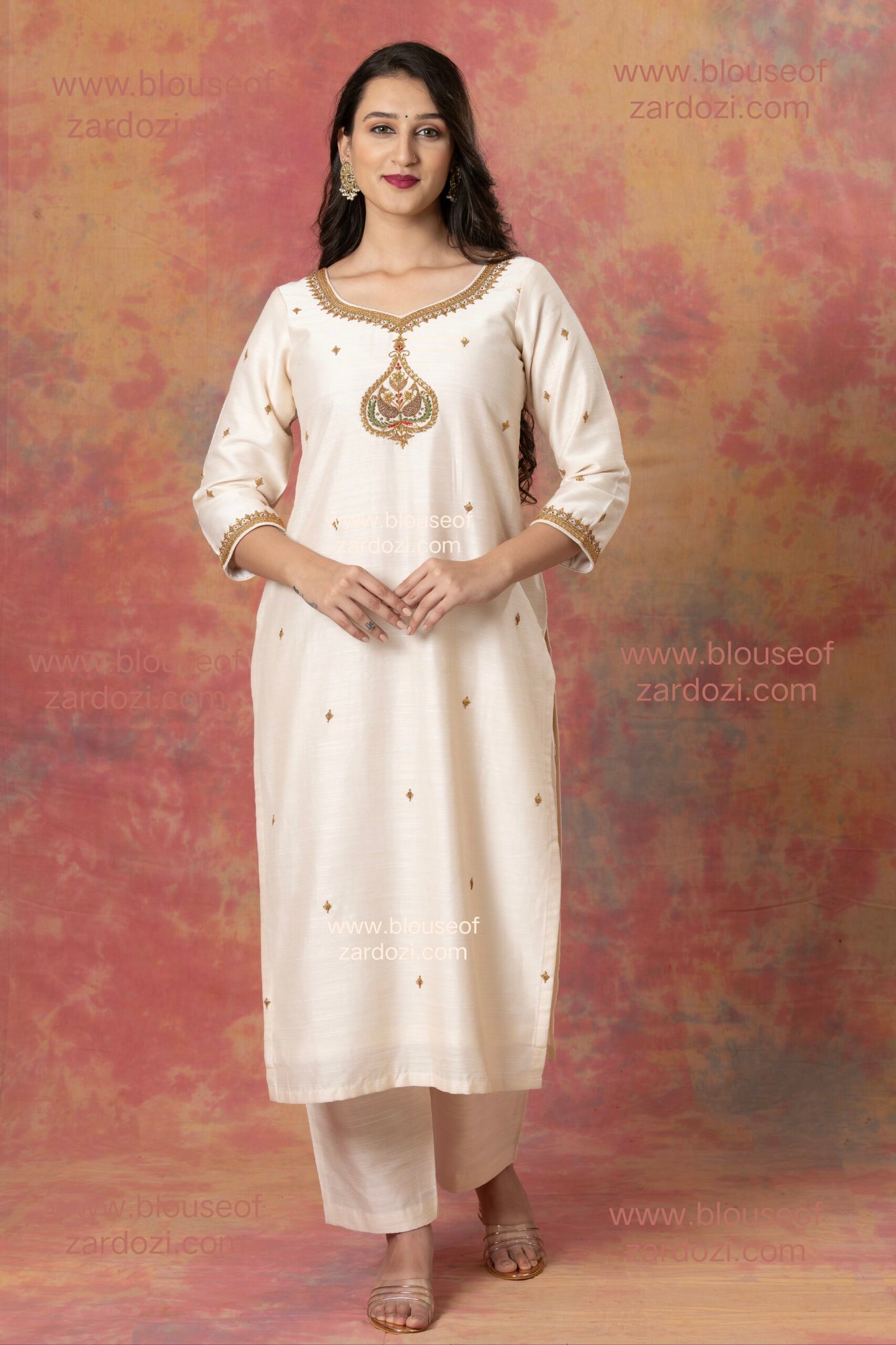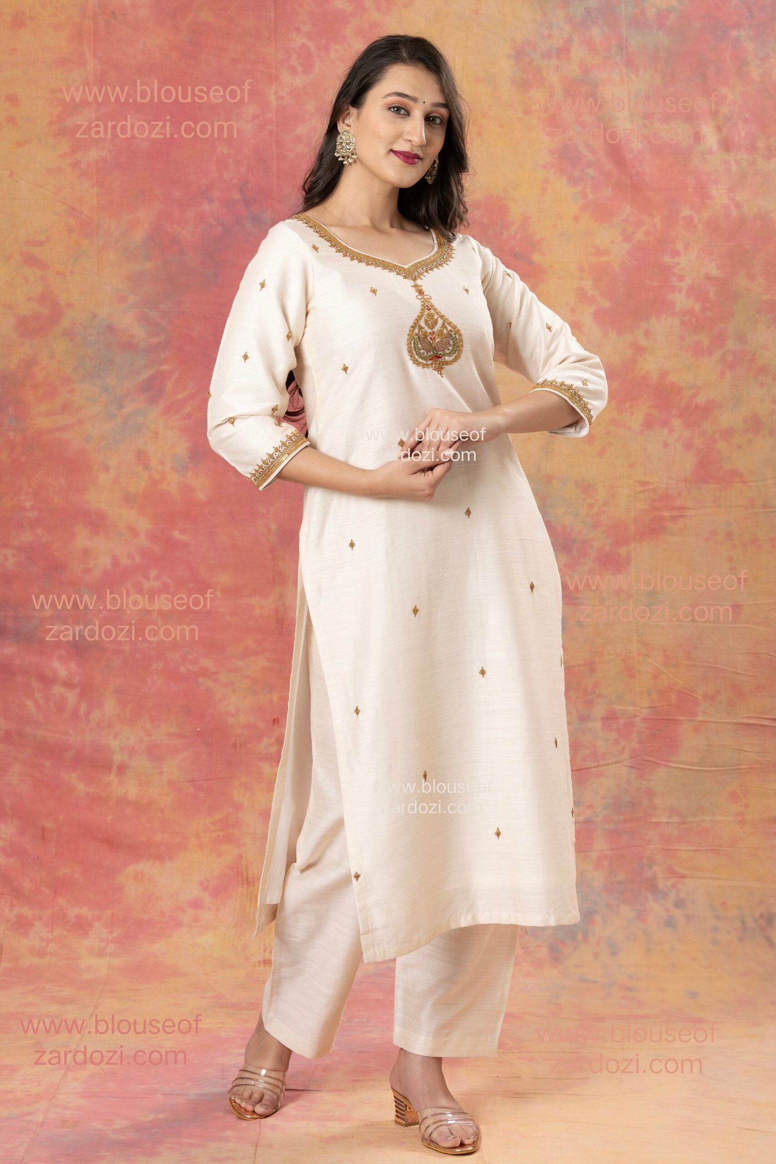 An KURTA SET MARODI work is one that has been carefully embellished with hand embroidery utilizing metallic threads. The ancient Indian art of MARODI embroidery was originally employed to embellish the garments of royalty and the affluent.