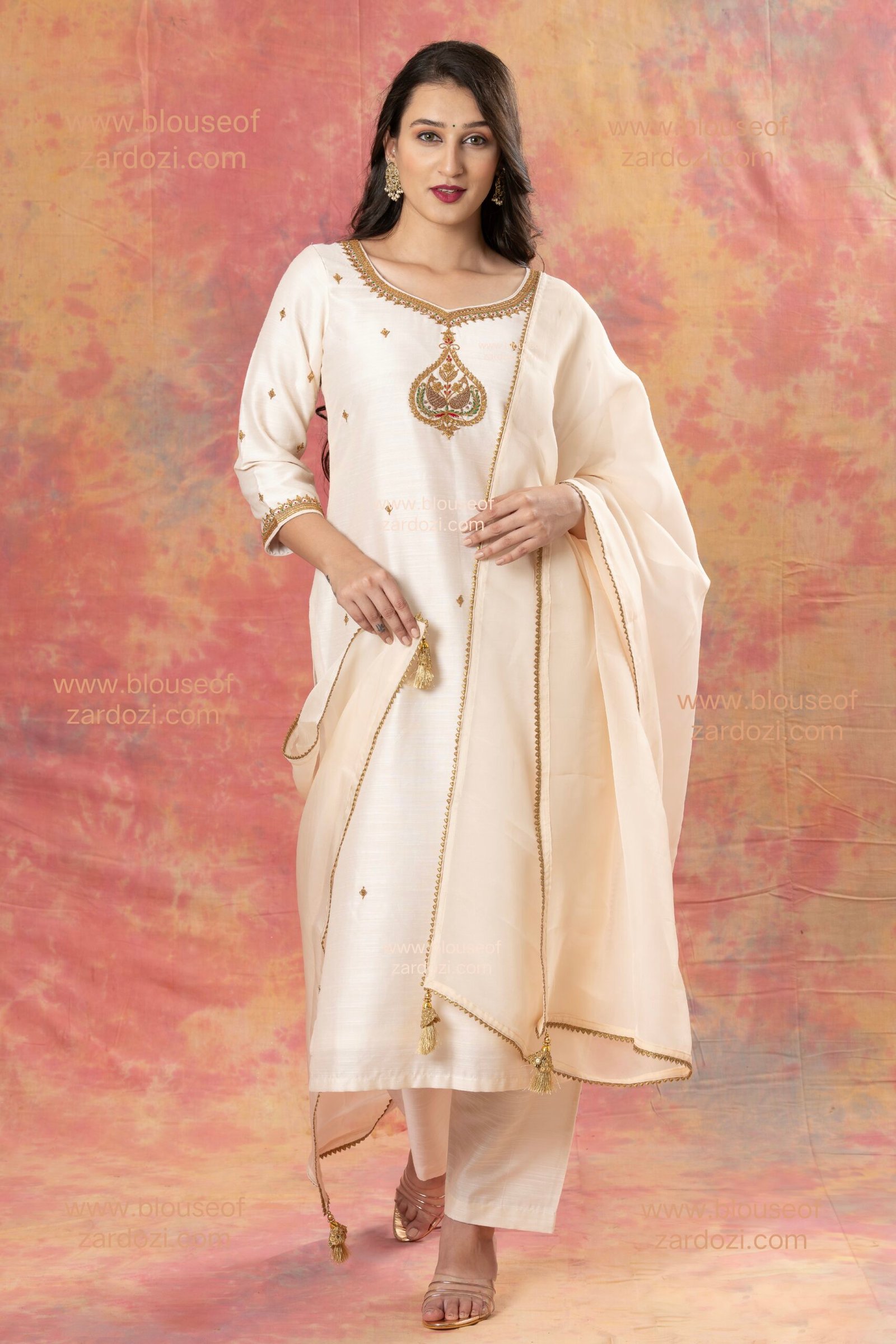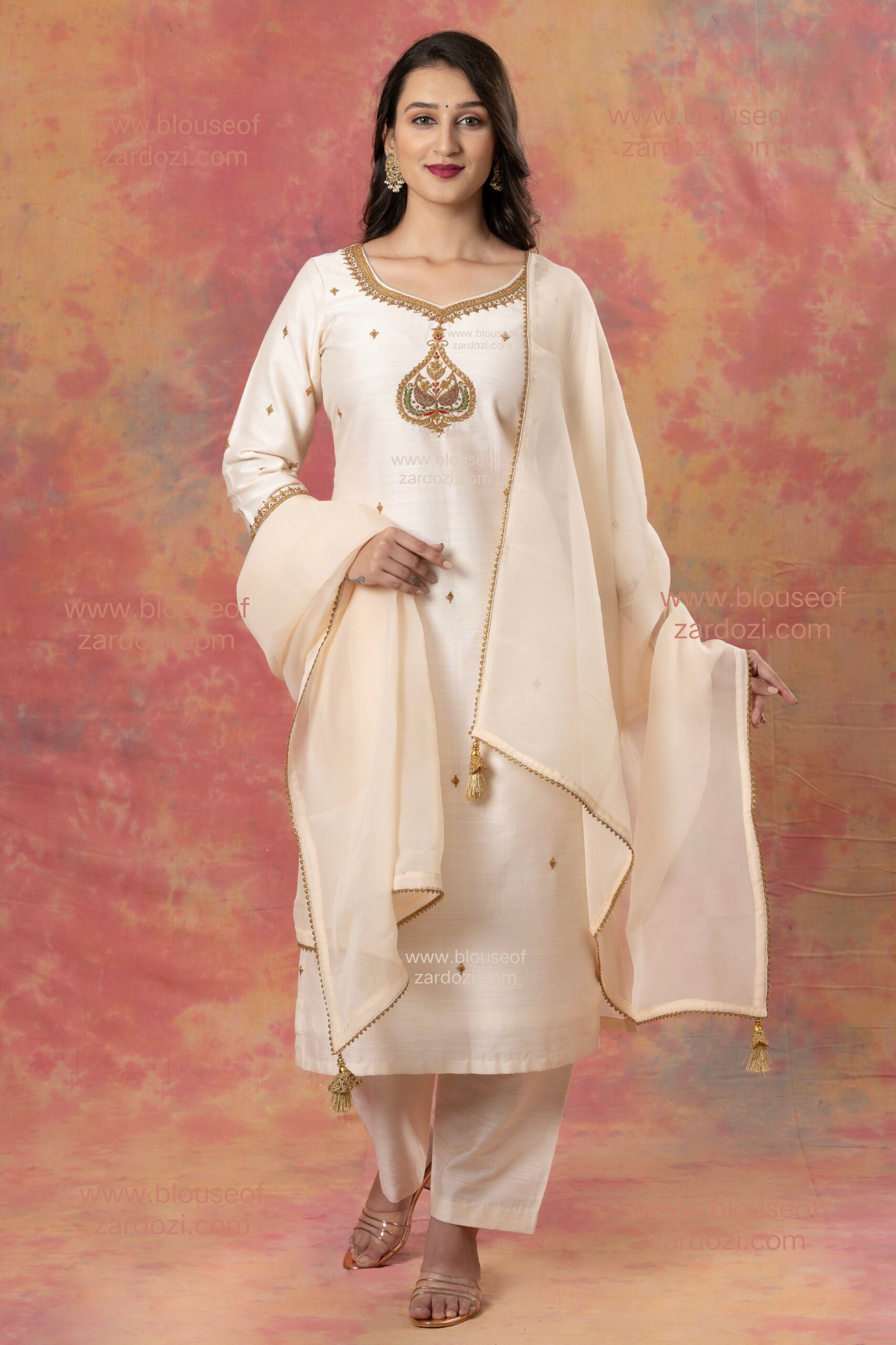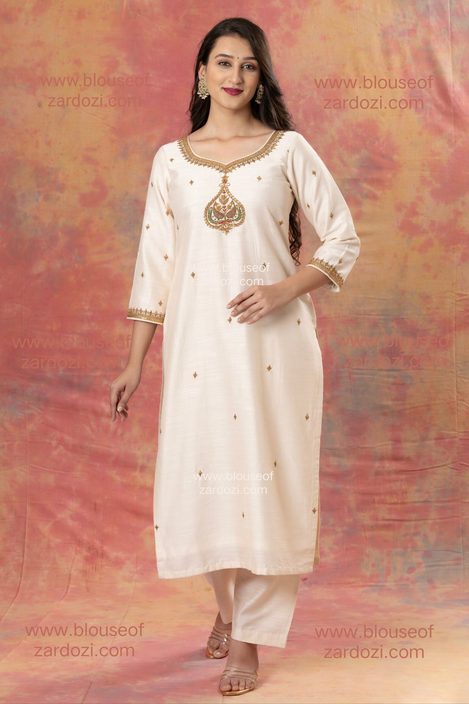 An KURTA SET MARODI work is one that has been carefully embellished with hand embroidery utilizing metallic threads. The ancient Indian art of MARODI embroidery was originally employed to embellish the garments of royalty and the affluent.